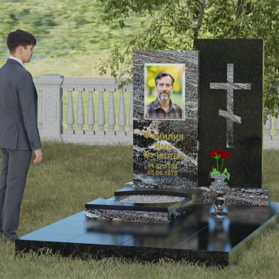Кому подойдет: Эта модель является универсальным решением для тех, кто ищет баланс между традициями и современным дизайном. В строгом контрастном исполнении (черный и белый гранит) мемориал станет достойным памятником отцу, мужу, брату или дедушке, подчеркивая их мужество и твердость. При выборе более мягких оттенков, таких как мрамор Тассо или гранит Блю Перл, композиция приобретает нежность и светлую грусть, идеально подходя для оформления захоронения матери, жены или дочери. Это выбор людей, стремящихся выразить свою глубокую скорбь через благородную эстетику камня, которая останется неизменной для многих поколений потомков.