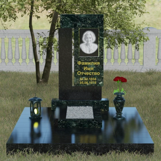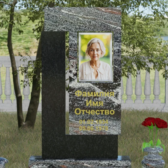 Архитектурное решение стелы предусматривает выделенную зону для портрета, которая может быть оформлена как в виде классической фотокерамики в овальной нише, так и методом художественной лазерной гравировки. Золоченая или вырубленная в камне надпись располагается на контрастном фоне, что обеспечивает отличную читаемость даже на расстоянии. Мы предлагаем этот проект в 8 уникальных цветовых исполнениях, что позволяет наделить мемориал индивидуальным характером. Вы можете выбрать глубокий черный гранит Габбро-диабаз, благородный серо-белый Мансуровский гранит, насыщенный красный Лезниковский, строгий Дымовский, изысканный Блю Перл с его синими искрами, текстурный Амфиболит, зеленый Балтик Грин или белоснежный мрамор Тассо.