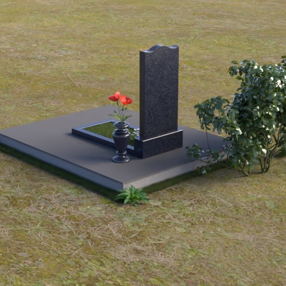 Величественная стела памятника ПВ 008 представляет собой элегантное сочетание строгих линий и плавных изгибов. Верхняя часть стелы имеет волнообразную форму, смягчающую строгость камня и придающую ей утонченность. Грани стелы тщательно отполированы до зеркального блеска, отражая свет и создавая ощущение легкости и воздушности. На лицевой стороне стелы размещен портрет усопшего, выполненный методом гравировки. Ниже располагаются надпись с именем и датами жизни. Под стелой расположена горизонтальная плита, также выполненная из полированного гранита. Ее строгие прямоугольные формы контрастируют с плавными линиями стелы, подчеркивая ее выразительность. Фаски по периметру плиты смягчают углы и придают ей завершенный вид. Рядом со стелой установлена небольшая ваза из темного гранита с изящным орнаментом, предназначенная для живых цветов.