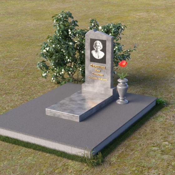 Форма арки, использованная в верхней части стелы, символизирует небесный свод, защиту и покровительство высших сил. Она создает ощущение покоя и умиротворения, напоминая о вечном пристанище души. Прямоугольное основание, напротив, олицетворяет земную твердь, незыблемость памяти и преемственность поколений. Сочетание этих двух форм создает гармоничный образ, объединяющий земное и небесное, временное и вечное. Зеркальная полировка камня символизирует чистоту помыслов и искренность чувств, которые испытывают близкие к ушедшему. Этот памятник – не просто знак скорби, а символ надежды и веры в бессмертие души.